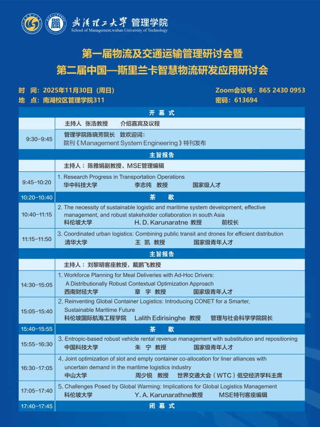地址:武漢市洪山區(qū)珞獅路122號(hào) 武漢理工大學(xué)管理學(xué)院 郵編:430070 Copyright ? 武漢理工大學(xué)管理學(xué)院 All Rights Reserved