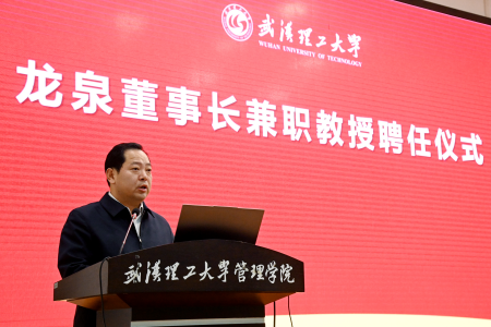 孟芳兵代表學(xué)校向龍泉校友再次回到母校、受聘學(xué)校兼職教授表示誠摯歡迎和熱烈祝賀。他指出,龍泉校友作為傳統(tǒng)金融互聯(lián)網(wǎng)頭部企業(yè)的掌門人,以卓越的領(lǐng)導(dǎo)力和創(chuàng)新精神,引領(lǐng)企業(yè)邁向高質(zhì)量發(fā)展新境界,并始終關(guān)心教育事業(yè),心系母校發(fā)展,以實(shí)際行動(dòng)詮釋飲水思源深情。他強(qiáng)調(diào),龍泉校友加盟我校并被聘任為兼職教授,這不僅是學(xué)校深化產(chǎn)教融合進(jìn)程中的一件大喜事,更是推動(dòng)學(xué)校管理學(xué)科實(shí)現(xiàn)高質(zhì)量發(fā)展的一項(xiàng)重大盛事。衷心希望龍泉校友以校為家,在學(xué)校事業(yè)發(fā)展中多給予有力支持,學(xué)校與中國平安財(cái)險(xiǎn)的戰(zhàn)略合作進(jìn)一步向縱深推進(jìn)、取得更扎實(shí)成效,在建設(shè)特色鮮明的世界一流大學(xué)征程上續(xù)寫武漢理工大學(xué)高質(zhì)量發(fā)展的精彩華章。
