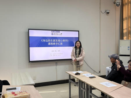 隨后,高楓老師圍繞課程《身邊的生涯發(fā)展心理學(xué)》進行了教學(xué)匯報。高老師從課程定位與教學(xué)思路入手,介紹了該課程如何立足學(xué)生現(xiàn)實生活,將生涯發(fā)展心理學(xué)理論與大學(xué)生成長需求相結(jié)合。通過貼近生活的案例、生動的課堂互動以及循序漸進的教學(xué)環(huán)節(jié)設(shè)計,引導(dǎo)學(xué)生認識自我、理解環(huán)境、規(guī)劃未來。在匯報中,高老師重點分享了如何通過課堂交流、反思性學(xué)習(xí)和實踐活動,幫助學(xué)生提升生涯規(guī)劃意識與心理調(diào)適能力,充分體現(xiàn)了課程的人文關(guān)懷與育人價值。